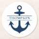 Nautical Navy Anchor Monogram Wedding Round Paper Coaster