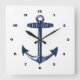 Nautical Navy Anchor Pattern Square Wall Clock