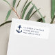 Classic nautical return address labels feature a preppy navy blue and white colour palette with a small anchor illustration. Add your address details in matching block and italic lettering. Coordinates with our Nautical Rope bridal shower invitations and accessories.