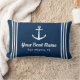 Nautical Navy Anchor Stripe Boat Name Lumbar Cushion