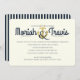 Elegant and simplistic gold anchor and text design nautical wedding invitation with navy blue text over a warm ivory background. Navy blue stripes on back can be removed if preferred.