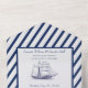 A very beautiful and elegant navy and white striped print wedding invitation, with navy yacht accent.