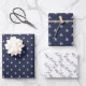 Perfectly simple and nautical wrapping paper sheet set that have anchors, sailboats, and Happy Holidays