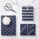 Perfectly simple and nautical wrapping paper sheet set with nautical touches of navy and white anchors, navy and white stripes, and navy and white sheets saying Happy Birthday