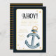 These nautical navy birthday invites feature a watercolor anchor and gold stars. Perfect for children’s ocean theme, boat theme, or pirate theme birthday parties.