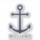 Modern Minimalist Nautical Custom-Cut Sticker feature navy blue anchor with personalised name in navy blue modern sans serif font style.