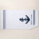 Nautical Navy Blue Anchor Boat Name Custom Beach Towel
