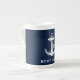 Nautical Navy Blue Anchor Boat Name Custom Bone China Mug