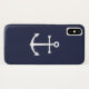 Modern Minimalist Nautical Phone Case features white anchor on navy blue background.