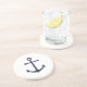 Modern Minimalist Nautical Sandstone Drink Coaster featuring navy blue anchor on white background.