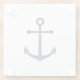 Modern Minimalist Nautical Glass Coaster featuring navy blue anchor on white background.