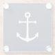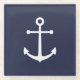 Modern Minimalist Nautical Glass Coaster featuring white anchor on navy blue background.