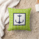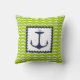 Nautical Navy Blue Anchor Green Waves Pattern Cushion