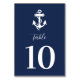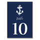 Nautical Navy Blue Anchor Modern Elegant Wedding Table Number