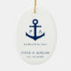 Nautical Navy Blue Anchor Monogram Wedding Ceramic Ornament