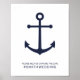This sign features an illustration of navy blue anchor with details in navy blue modern sans serif font style on white background.
