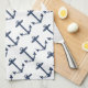 Nautical Navy Blue Anchor Pattern Tea Towel
