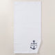 Nautical Navy Blue Anchor Personalised Name Beach Towel