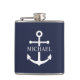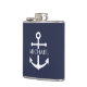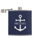 Nautical Navy Blue Anchor Personalised Name Hip Flask