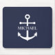 Nautical Navy Blue Anchor Personalised Name Mouse Pad