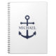 Nautical Navy Blue Anchor Personalised Name Notebook