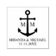 Designed with an anchor illustration, it features personalised bride and groom monogram, name, and wedding date in a serif font.