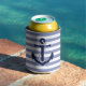 Nautical navy blue anchor with rope/blue stripe can cooler