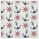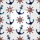 Nautical Navy Blue and red Anchor rudder pattern fabric