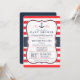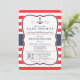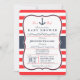 It's a boy! Elegant nautical navy blue anchor baby shower invite on red horizonal stripes, striped pattern with vintage formal look. Great for nautical, boat, ocean theme baby showers.