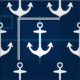 Nautical Navy Blue and White Anchors Pattern Fabric
