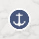 This custom party confetti features a navy blue and white nautical theme. Each piece features an image of a boat anchor. The front side features a white background white a navy blue coloured boat or ship anchor and the back side features a navy blue background with white anchor. The large pieces feature sample text with a "Captain" title and sample name printed at the bottom. You can personalise the confetti to include your own event type, Captain name, or other custom text.