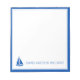 This cute coastal nautical inspired notepad features a navy blue sailboat on white on the front with a matching blue border.