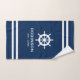 Nautical navy blue and white stripe custom name bath towel set