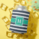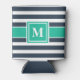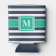 Nautical Navy Blue and White Striped Monogram Can Cooler