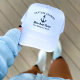 Custom nautical boating hat design features a simple, stylish navy blue coastal style design with boat anchor accent. Personalise the custom text with the name of the boat, boat owner or captain, location, or other preferred wording. Navy blue colour can be modified.