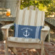 Nautical fleece "Lake House" throw pillow features a coastal style boat anchor and stripes design. Personalise the custom text with a family last name + lake house (or other title) with the year established. Classic navy blue and white colour scheme. Indoor and outdoor pillow fabrics available.