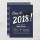 Nautical Navy Blue Graduation Party Invitation with Graduation Cap.