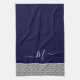 Nautical Navy Blue Grey Seashell Monogram initial Tea Towel