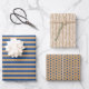 Nautical Navy Blue Lines Faux Rustic Brown Kraft Wrapping Paper Sheet