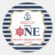 Nautical Navy Blue ONE First 1st Birthday Party Classic Round Sticker