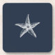 Elegant and unique maritime coaster. This design features an illustration of a white starfish on a navy blue background. Pick your favourite style and size and buy it now or give it as a perfect gift to a sea lover.
