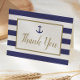 Nautical Navy Blue Stripes Anchor Gold Script Thank You Card