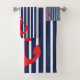 Nautical Navy Blue Stripes Red Anchor Bath Towel Set
