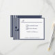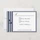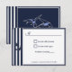 Nautical navy blue swallows RSVP invitations - the front design features a anchor ribbon with a outline that runs along the edges of the card. The designs and text are navy blue on top of a white background. The back design continues the ribbon around the card and the outline and background colours have now been switched, where the outline is white and the background is navy blue. In the middle is two swallows in flight, working together to carry a anchor on a rope. The paper by default is set to basic invitation stock, but can be changed by clicking 'choose your style' then using the Paper drop down box pick one of the options. Each invitation comes with a white envelope. To change the font, font size, or font colour, click the customise button below the Nautical RSVP invitation. Note you may have to customise it if certain wording is too long and so it fits the design better. If your satisfied with the font setup, you can use the personalise feature to change the demonstration information to your personal details. Clicking the small images of the front/back of the card with change to that side so it can be altered. When done check the information you applied is correct and that you have no spelling errors on both sides of the card.