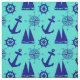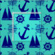 Coastal nautical pattern of anchors, compass rose, and ship’s helm for a cool coastal beach design.