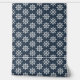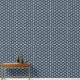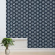A nautical wallpaper featuring a white boat wheel pattern on a navy blue background. Perfect for an accent wall or for a room makeover to elevate the aesthetic of your space.