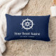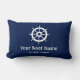 Nautical Navy Blue White Custom Boat Name Lumbar Cushion