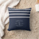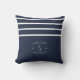 Nautical Navy Blue White Family Name Lake House Throw Pillow - Experience the perfect blend of modern coastal charm with our Nautical Navy Blue White Family Name Lake House Throw Pillow, featuring bold stripes and an anchor design that embodies the essence of summer at your family beach house or lake house. Personalise it with your family name for a unique touch that adds a nautical flair to your bathroom decor.
