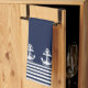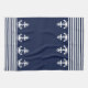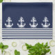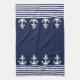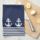 Nautical Navy Blue White Stripes and White Anchor Tea Towel