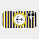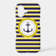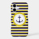 Nautical Navy Blue Yellow Stripes Anchor Design